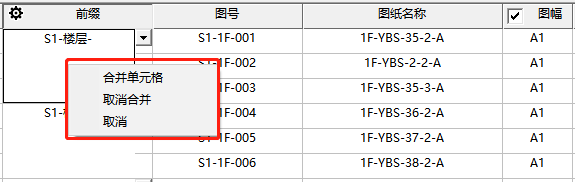 右键前缀的单元格,可选择合并单元格,此时被合并的行采取相同前缀进行自动排布,如下图所示: