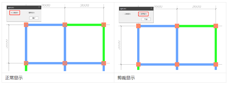 点击“裁剪显示”,在弹出的对话框中勾选“裁剪显示”,装配式模型会进行裁剪显示,剪裁了梁柱、墙柱重叠部分的区域。如图所示: