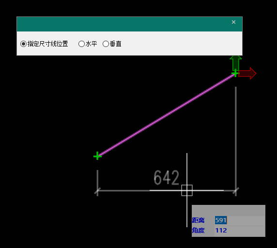选择对象时,可选择直线,自动标注直线两端点之间的水平或垂直距离。