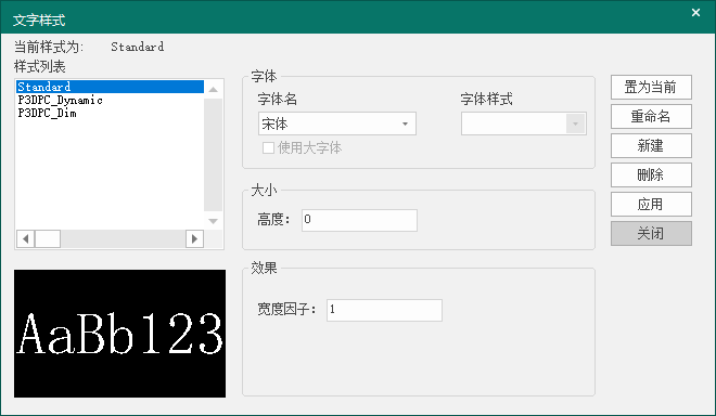 - 关闭:关闭文字样式对话框。