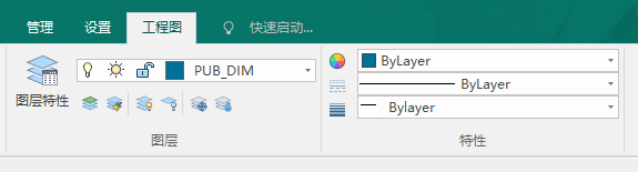图层子模块中,包含了图层特性管理器、图层和特性状态栏及快捷按钮,如下图所示。