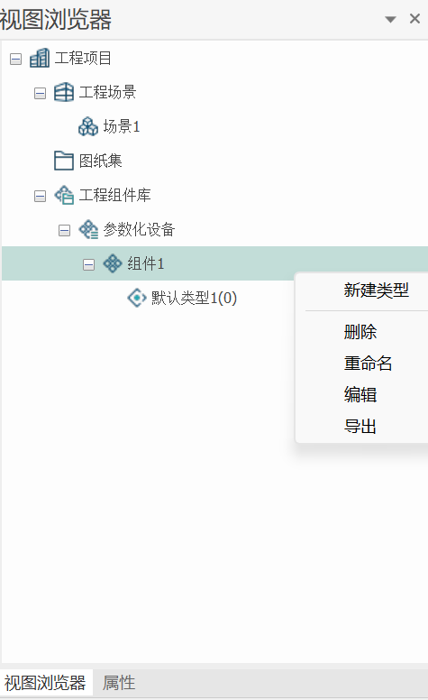 - 组件类型名称节点右键菜单,如图3.3.1-3。