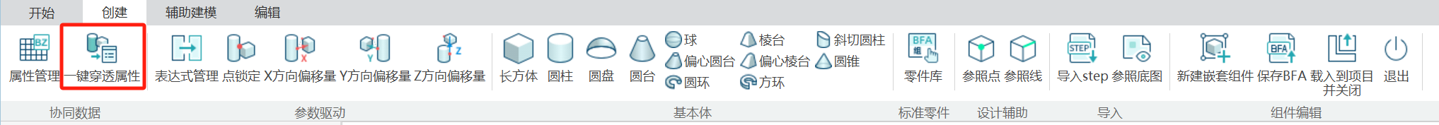 1. 点击菜单【一键穿透属性】按钮,激活工具。