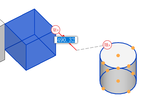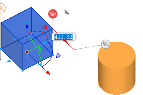 - 若是【X/Y/Z方向偏移量】,在选择了随动点后需要输入偏移量的具体数值,完成后回车完成创建。