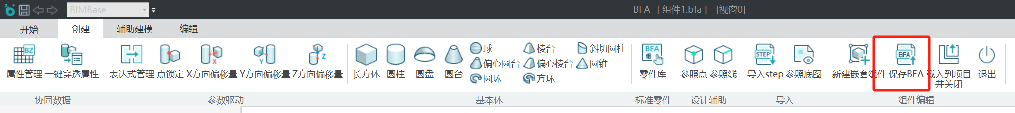未退出组件环境时,第二次点击本按钮,会直接将BFA保存到第一次的路径下,覆盖原文件。